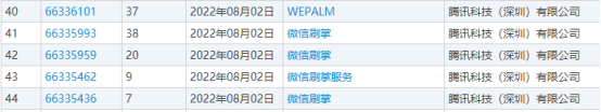 據商標局官網顯示,騰訊科技(深圳)有限公司在(zài)2022年8月2號,分別注冊了“WEPALM”“微信刷掌”“微信刷掌服務”等多枚商標,目前都處於等待受理中。看來是做好(hǎo)了(le)要大力推行的準備。不得不說,大廠就是大廠,十分懂得兵馬未動,商標先行的道(dào)理。