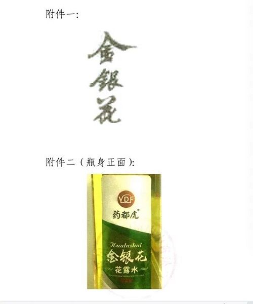 具體原因是因為其花(huā)露水的包裝標識上麵印有“金銀花”三字而被告商標侵權。