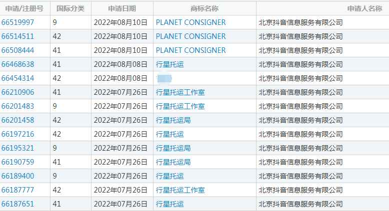 從商標布局上,看得出抖音對“行(háng)星托運(yùn)”的重視程度。