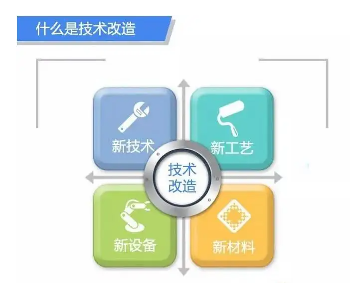 主要包括廠房(fáng)、公用設施的翻新改(gǎi)造,三廢治理,改善勞動條件,減輕勞動強度,安(ān)全生產(chǎn)、三廢達(dá)標(biāo)排放等。