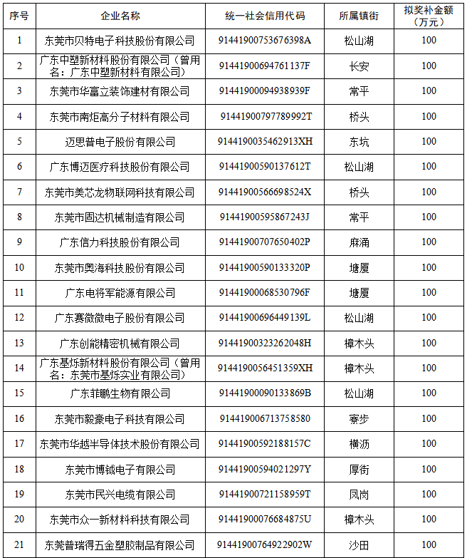 根據《廣東省工業和信息化廳關於下達(dá) 2022 年專精特新“小(xiǎo)巨人”企業獎補資金安(ān)排計劃的通知》(粵(yuè)工信融資函〔2022〕50號),我局開展了省級財政2022年(nián)專精特新“小巨人”企業獎補資金申報工作。經企業申報、申報對(duì)象資格審核和上報省工信廳審核,現對獎補資金安排計劃予以公示。
