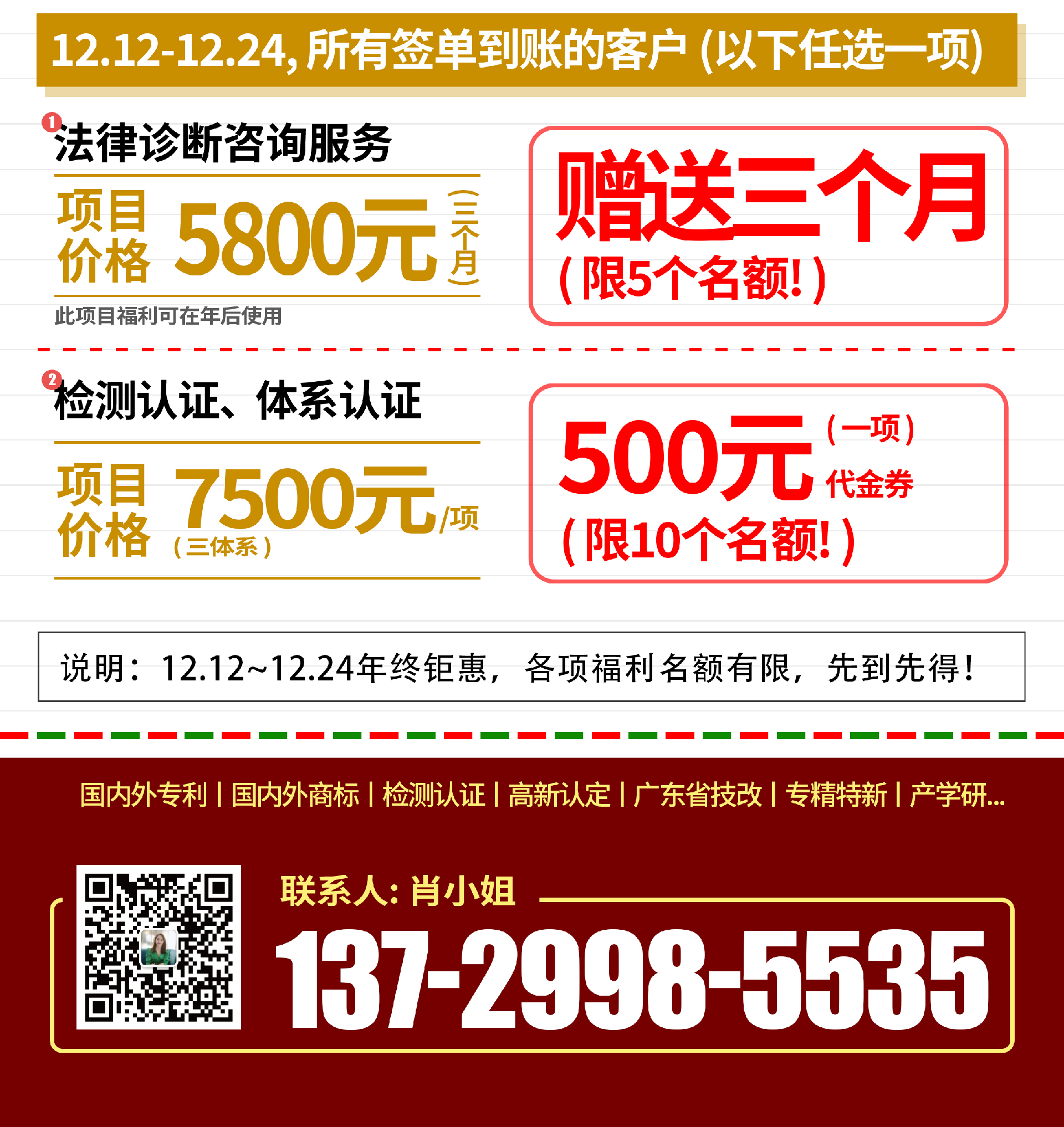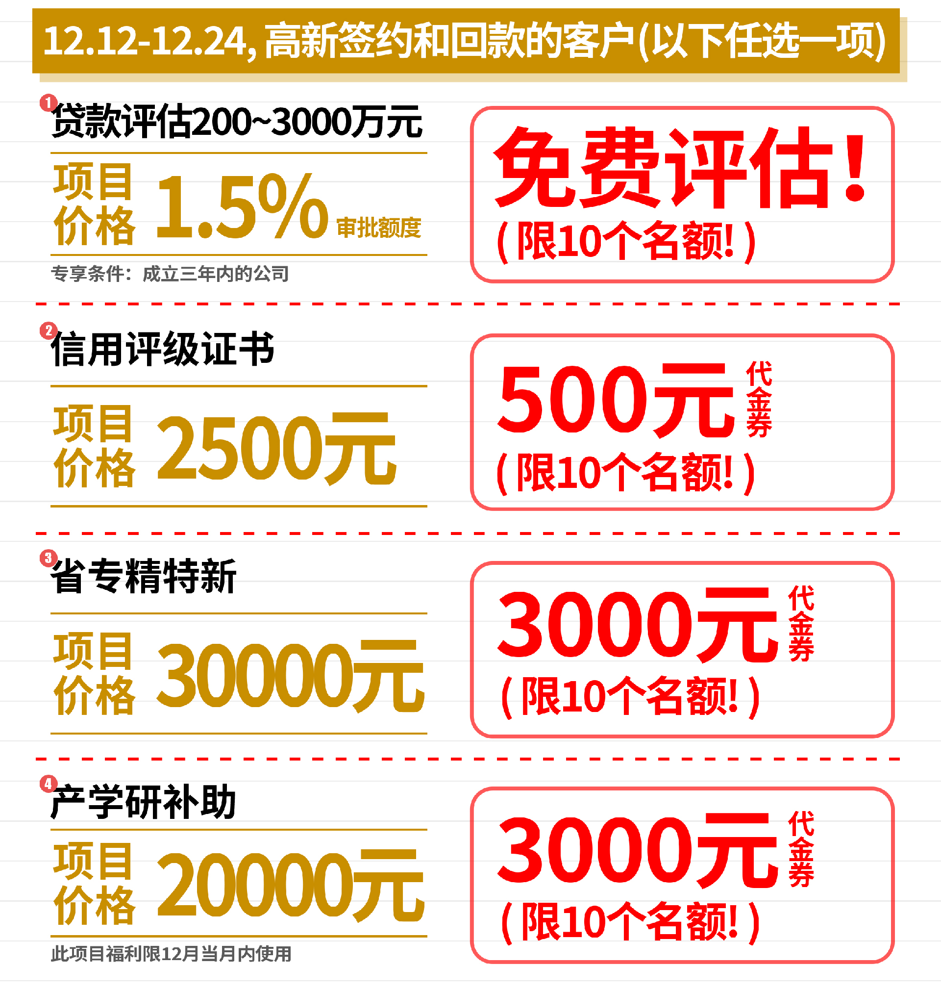 既有為簽約專利和高新的客戶(hù),分別量身(shēn)打造(zào)的任選福利(lì),也有供所有客戶選擇(zé)的福(fú)利!