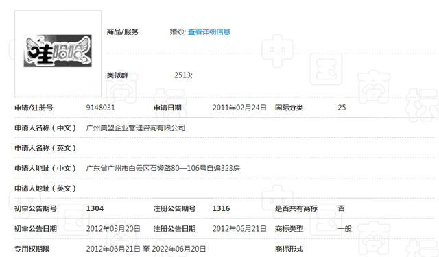 第9148031號“哇哈哈及圖”的商標所有人(rén)為廣州美盟企業管理谘詢有(yǒu)限公司。